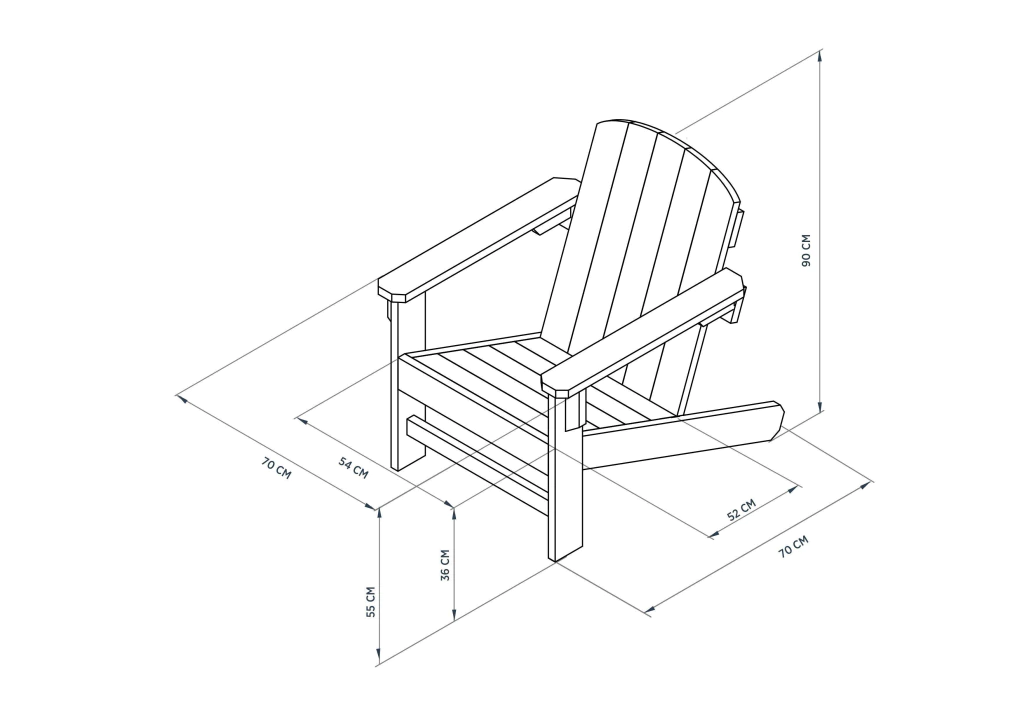 Asiento 54x52cm, alto frente 36cm, alto atras 20cm. Apoya brazos a 57cm.
